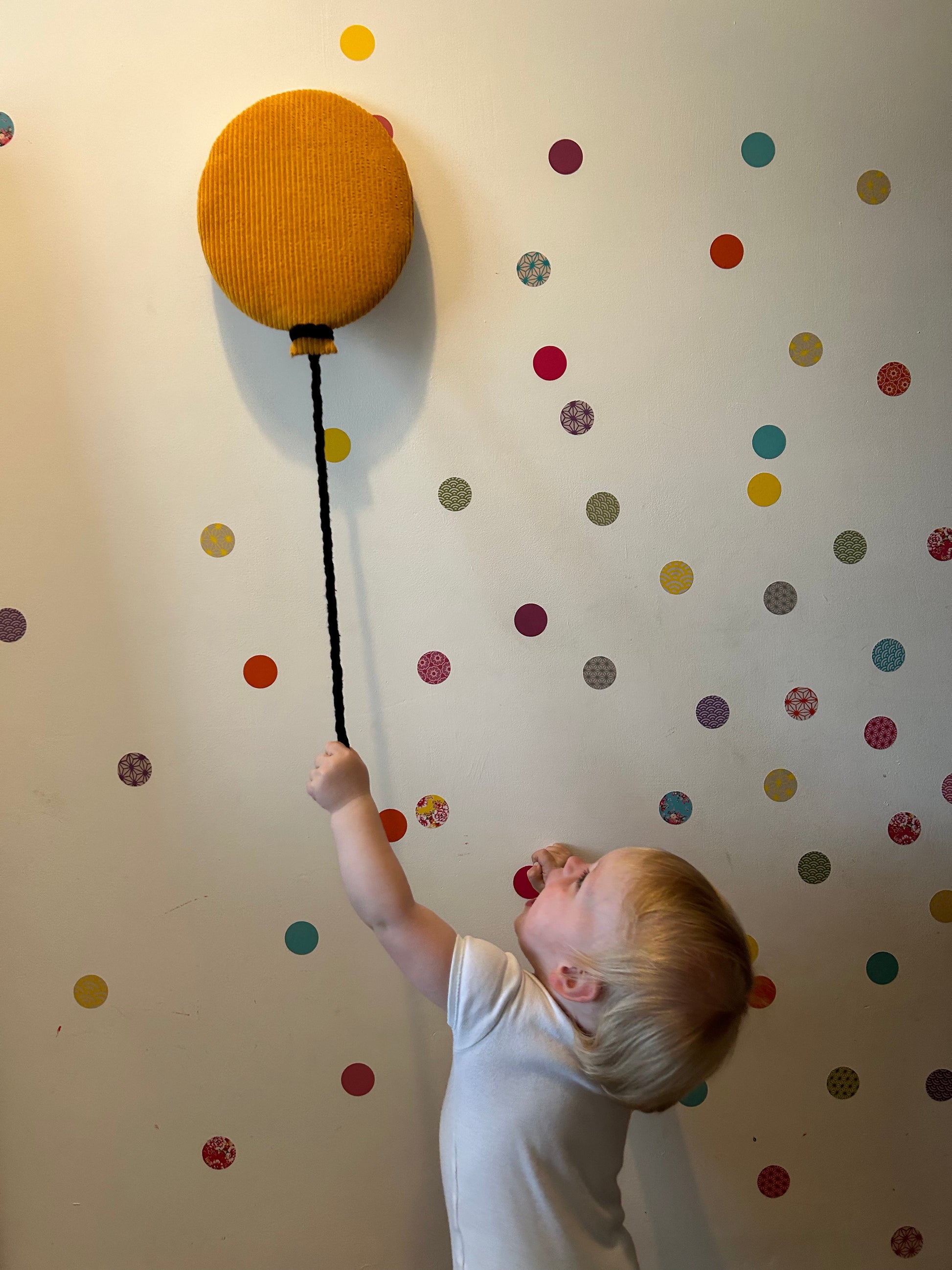The balloons are approx 30cm x 23cm and can be hung on the wall via the hook on the back The rope is apron 27cm. they also make beautiful little photo props to take with your little ones.