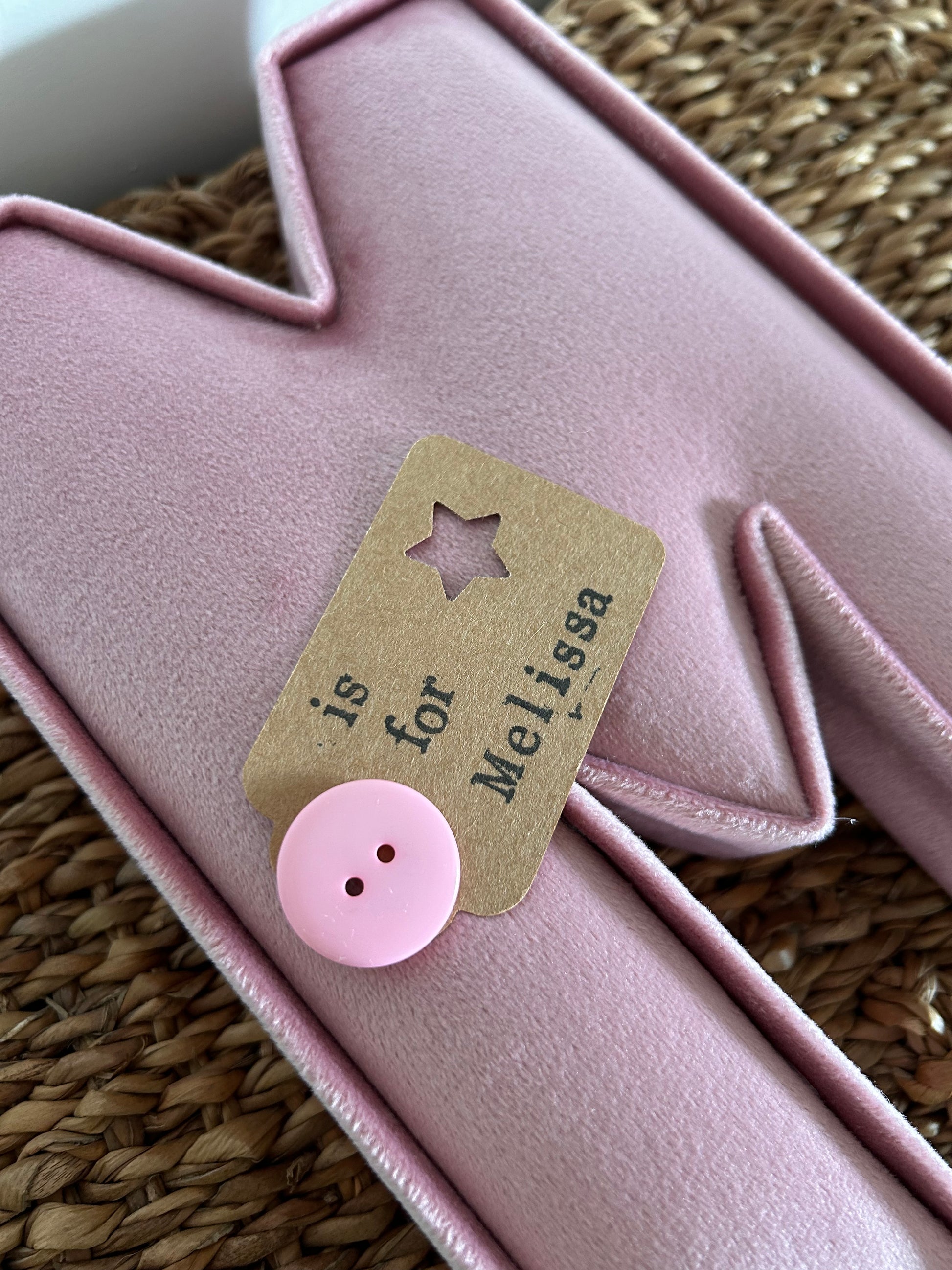 Handmade velvet fabric letters designed to create a beautiful, personalised feature in a child’s bedroom or nursery. A thoughtful new baby or christening gift that becomes part of their room as they grow.